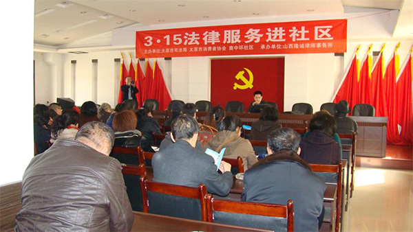 我所律师武建人、曹元杰、罗飞、刘俊奎等3.15期间进南中环社区进行普法宣传